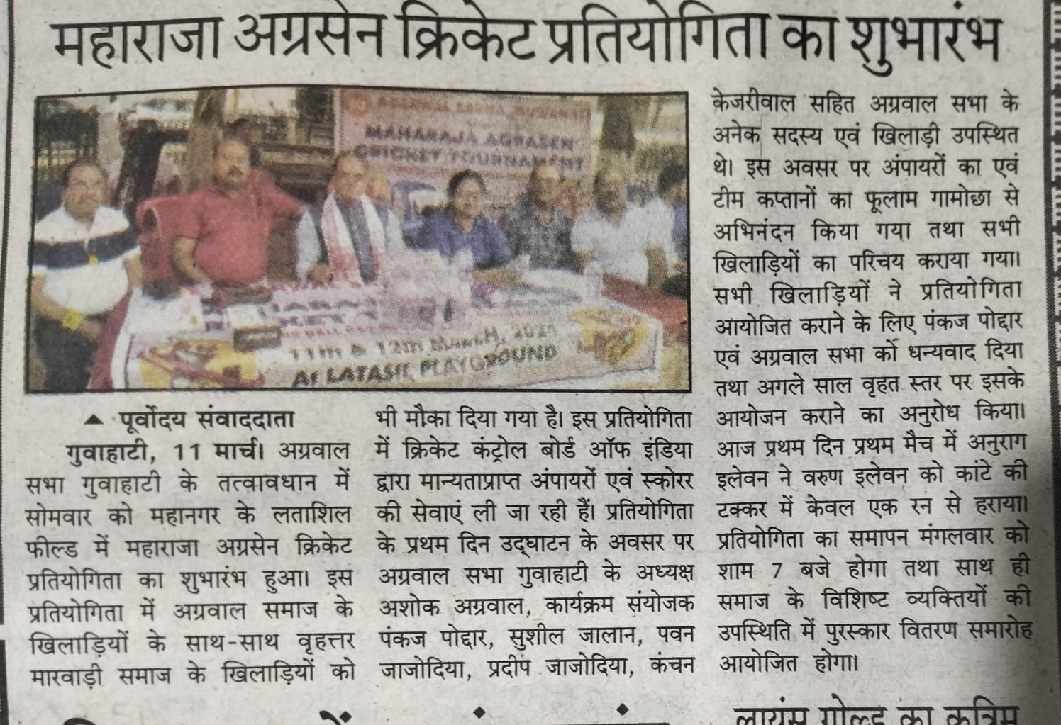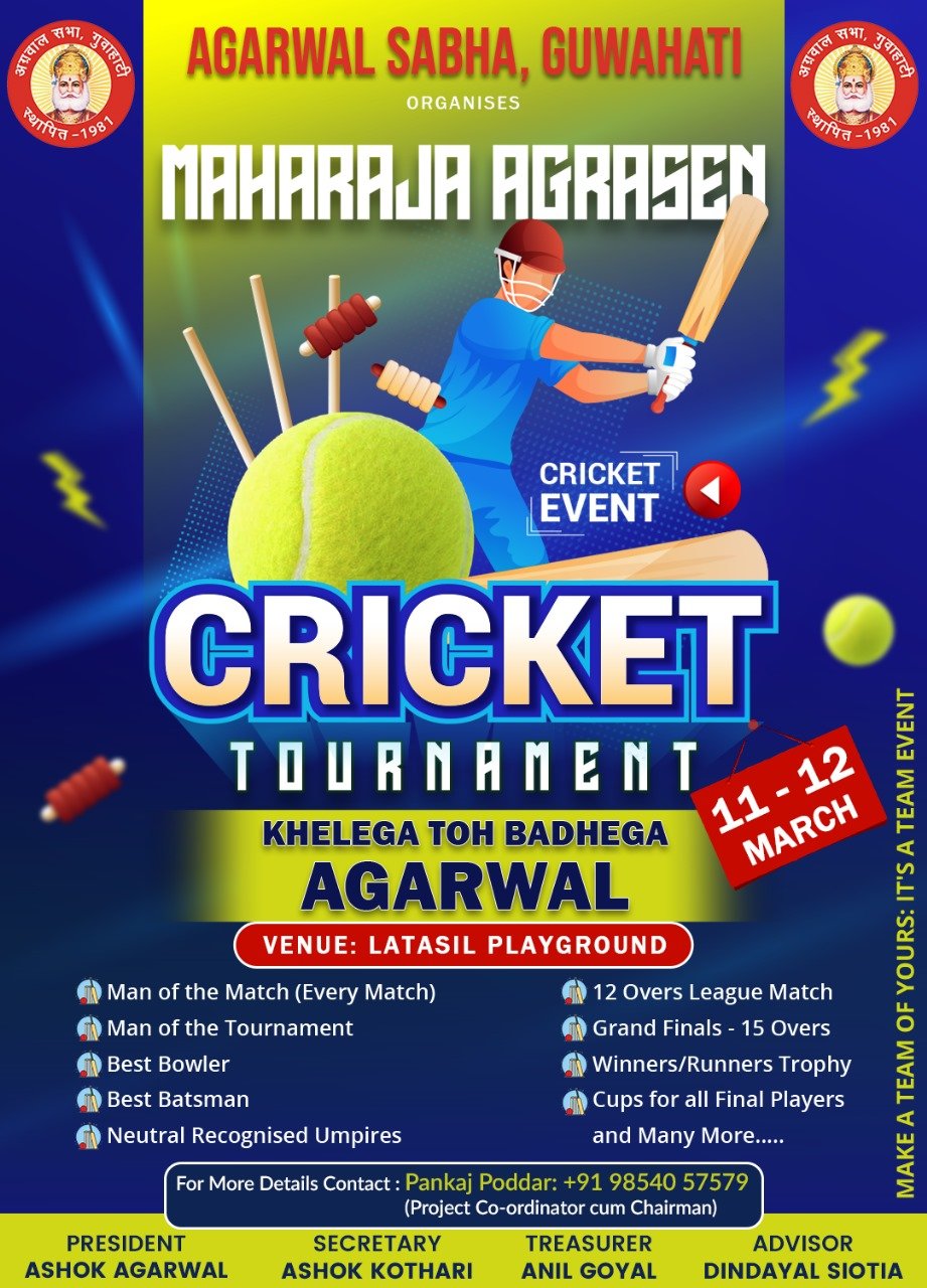Maharaja Agrasen Cricket Tournament 2024By Akash Agarwalla / March 15, 2024 Maharaja Agrasen Cricket Tournament Event Organised by the Agarwal Sabha from 11-12 March, 2024 Maharaja Agrasen Cricket tournament 2024Maharaja Agrasen Cricket tournament 2024Maharaja Agrasen Cricket tournament 2024Maharaja Agrasen Cricket tournament 2024Maharaja Agrasen Cricket tournament 2024Load MoreEnd of Content.